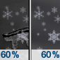 Temperature: 13°F Wind Speed: 5 to 10 mph Wind Direction: SSW Forecast: A slight chance of snow between 7pm and 8pm, then a slight chance of freezing rain between 8pm and 9pm, then snow likely. Mostly cloudy. Low around 13, with temperatures rising to around 24 overnight. South southwest wind 5 to 10 mph. Chance of precipitation is 60%. New snow accumulation of less than one inch possible. |