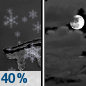 Temperature: 13°F Wind Speed: 6 to 16 mph Wind Direction: WNW Forecast: A chance of freezing rain before 10pm, then a slight chance of snow and a slight chance of freezing rain between 10pm and 11pm. Mostly cloudy. Low around 13, with temperatures rising to around 17 overnight. West northwest wind 6 to 16 mph, with gusts as high as 26 mph. Chance of precipitation is 40%. |