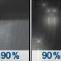 Temperature: 35°F Wind Speed: 10 to 15 mph Wind Direction: SW Forecast: Rain showers before 2am, then rain likely between 2am and 5am, then a slight chance of rain showers. Mostly cloudy. Low around 35, with temperatures rising to around 40 overnight. Southwest wind 10 to 15 mph, with gusts as high as 25 mph. Chance of precipitation is 90%. New rainfall amounts between a quarter and half of an inch possible. |