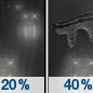 Temperature: 29°F Wind Speed: 5 to 10 mph Wind Direction: S Forecast: A chance of rain. Mostly cloudy, with a low around 29. Chance of precipitation is 40%. |