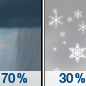 Temperature: 34°F Wind Speed: 10 to 20 mph Wind Direction: S Forecast: A chance of rain showers after midnight. Mostly cloudy, with a low around 34. |