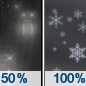 Temperature: 49°F Wind Speed: 3 to 8 mph Wind Direction: SW Forecast: A chance of rain and snow. Mostly cloudy, with a high near 49. Chance of precipitation is 50%. |