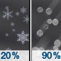 Temperature: 32°F Wind Speed: 7 mph Wind Direction: S Forecast: A chance of snow before 2am, then snow showers likely between 2am and 3am, then rain and snow showers between 3am and 5am, then a slight chance of sleet and rain and snow showers likely. Cloudy, with a low around 32. South wind around 7 mph. Chance of precipitation is 90%. New snow accumulation of less than half an inch possible. |