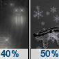 Temperature: 31°F Wind Speed: 3 to 7 mph Wind Direction: S Forecast: A chance of snow before 1pm. Mostly cloudy. High near 31, with temperatures falling to around 27 in the afternoon. South wind 3 to 7 mph. Chance of precipitation is 40%. New snow accumulation of less than half an inch possible. |