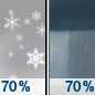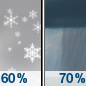 Temperature: 51°F Wind Speed: 5 mph Wind Direction: SE Forecast: A chance of snow showers before 9am, then rain showers likely. Cloudy, with a high near 51. Southeast wind around 5 mph. Chance of precipitation is 70%. New snow accumulation of less than half an inch possible. |