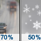 Temperature: 14°F Wind Speed: 8 to 12 mph Wind Direction: S Forecast: A chance of snow. Mostly cloudy, with a low around 14. Chance of precipitation is 30%. |