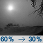 Temperature: 16°F Wind Speed: 5 mph Wind Direction: NW Forecast: A chance of snow showers. Mostly cloudy, with a low around 16. |