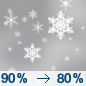 Temperature: 34°F Wind Speed: 5 to 12 mph Wind Direction: N Forecast: Snow. Cloudy, with a high near 34. North wind 5 to 12 mph, with gusts as high as 25 mph. Chance of precipitation is 90%. New snow accumulation of 1 to 2 inches possible. |