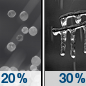 Temperature: 22°F Wind Speed: 3 mph Wind Direction: SW Forecast: Mostly cloudy. Low around 22, with temperatures rising to around 29 overnight. Southwest wind around 3 mph. Chance of precipitation is 20%. |
