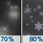 Temperature: 46°F Wind Speed: 5 to 9 mph Wind Direction: SSW Forecast: Rain and snow likely before 5pm. Mostly cloudy, with a high near 46. |