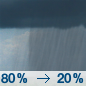 Temperature: 55°F Wind Speed: 6 to 10 mph Wind Direction: S Forecast: Rain showers likely before 7pm, then showers and thunderstorms. Mostly cloudy, with a low around 55. Chance of precipitation is 80%. New rainfall amounts between a quarter and half of an inch possible. |