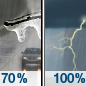Temperature: 44°F Wind Speed: 3 to 9 mph Wind Direction: S Forecast: Rain likely and a slight chance of thunderstorms after 1am. Cloudy, with a low around 44. Chance of precipitation is 60%. |