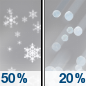 Temperature: 34°F Wind Speed: 8 mph Wind Direction: S Forecast: A chance of snow before 1pm, then a slight chance of sleet between 1pm and 3pm, then a slight chance of snow. Cloudy, with a high near 34. South wind around 8 mph. Chance of precipitation is 50%. New snow accumulation of less than half an inch possible. |