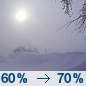 Temperature: 33°F Wind Speed: 15 to 30 mph Wind Direction: W Forecast: A chance of snow between 9am and 11am, then snow likely and patchy blowing snow. Mostly cloudy. High near 33, with temperatures falling to around 10 in the afternoon. Wind chill values as low as -11. West wind 15 to 30 mph, with gusts as high as 50 mph. Chance of precipitation is 60%. New snow accumulation of less than one inch possible. |