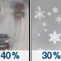 Temperature: 35°F Wind Speed: 10 to 15 mph Wind Direction: W Forecast: A slight chance of snow between 10am and 1pm, then a chance of rain and snow. Partly sunny, with a high near 35. |