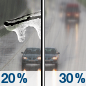 Temperature: 30°F Wind Speed: 2 to 6 mph Wind Direction: SSE Forecast: Rain likely after 7pm. Cloudy, with a low around 30. |