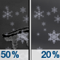 Temperature: 34°F Wind Speed: 5 to 10 mph Wind Direction: E Forecast: A chance of snow. Mostly cloudy, with a high near 34. |