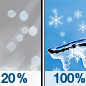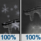 Temperature: 33°F Wind Speed: 2 to 6 mph Wind Direction: E Forecast: A slight chance of snow and a slight chance of sleet between 10am and 1pm, then snow and sleet and freezing rain between 1pm and 4pm, then sleet and freezing rain and a slight chance of snow. Cloudy, with a high near 33. East wind 2 to 6 mph. Chance of precipitation is 100%. New snow accumulation of less than one inch possible. Little or no ice accumulation expected. |