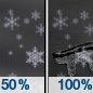 Temperature: 30°F Wind Speed: 6 to 10 mph Wind Direction: SW Forecast: A chance of snow showers between 8pm and midnight, then snow between midnight and 4am, then snow and a slight chance of freezing rain. Cloudy, with a low around 30. Southwest wind 6 to 10 mph. Chance of precipitation is 100%. New snow accumulation of 1 to 2 inches possible. |