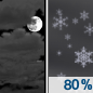 Temperature: 23°F Wind Speed: 3 to 12 mph Wind Direction: ENE Forecast: Snow showers after 5am. Mostly cloudy, with a low around 23. East northeast wind 3 to 12 mph. Chance of precipitation is 80%. New snow accumulation of less than one inch possible. |