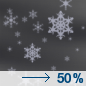 Temperature: 12°F Wind Speed: 2 to 6 mph Wind Direction: SSE Forecast: A chance of snow. Cloudy, with a low around 12. Chance of precipitation is 40%. |