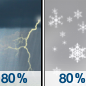 Temperature: 53°F Wind Speed: 8 to 13 mph Wind Direction: SW Forecast: Rain likely before 11am, then showers and thunderstorms between 11am and 5pm, then a chance of rain and snow. Mostly cloudy, with a high near 53. Chance of precipitation is 80%. |