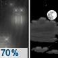 Temperature: 20°F Wind Speed: 8 to 14 mph Wind Direction: W Forecast: Rain likely before 7pm. Partly cloudy, with a low around 20. Chance of precipitation is 70%. |