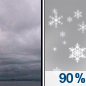 Temperature: 39°F Wind Speed: 7 mph Wind Direction: SW Forecast: Snow likely. Mostly cloudy, with a high near 39. Chance of precipitation is 60%. New snow accumulation of less than half an inch possible. |