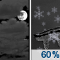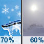 Temperature: 41°F Wind Speed: 13 to 39 mph Wind Direction: SSW Forecast: Snow likely and a chance of freezing rain before 9am, then rain and snow likely between 9am and 5pm, then snow likely and patchy blowing snow. Mostly cloudy, with a high near 41. South southwest wind 13 to 39 mph, with gusts as high as 56 mph. Chance of precipitation is 70%. New snow accumulation of less than one inch possible. Little or no ice accumulation expected. |