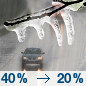 Temperature: 39°F Wind Speed: 8 mph Wind Direction: E Forecast: A chance of freezing rain and a chance of rain showers before 1pm. Cloudy, with a high near 39. Chance of precipitation is 40%. |