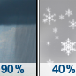Temperature: 50°F Wind Speed: 17 mph Wind Direction: W Forecast: Rain showers before 5pm, then a slight chance of snow showers. Partly sunny, with a high near 50. West wind around 17 mph, with gusts as high as 36 mph. Chance of precipitation is 90%. |
