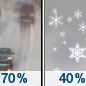 Temperature: 44°F Wind Speed: 15 to 20 mph Wind Direction: SW Forecast: Rain likely before noon, then a chance of rain and snow. Mostly cloudy. High near 44, with temperatures falling to around 30 in the afternoon. Chance of precipitation is 70%. New snow accumulation of less than half an inch possible. |