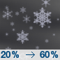 Temperature: 32°F Wind Speed: 9 to 18 mph Wind Direction: SW Forecast: Snow likely after 10pm. Mostly cloudy, with a low around 32. Chance of precipitation is 60%. |
