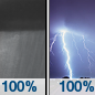 Temperature: 44°F Wind Speed: 6 mph Wind Direction: SSW Forecast: Showers and thunderstorms. Cloudy, with a low around 44. |