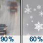 Temperature: 38°F Wind Speed: 8 to 12 mph Wind Direction: S Forecast: Snow likely before 5pm, then rain and snow. Mostly cloudy, with a high near 38. Chance of precipitation is 80%. New snow accumulation of less than half an inch possible. |