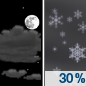 Temperature: 23°F Wind Speed: 8 to 16 mph Wind Direction: SW Forecast: A chance of snow after 5am. Partly cloudy, with a low around 23. Chance of precipitation is 30%. |