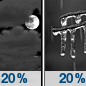 Temperature: 41°F Wind Speed: 6 mph Wind Direction: N Forecast: A slight chance of freezing rain before 7am, then a slight chance of rain. Mostly cloudy, with a high near 41. Chance of precipitation is 20%. |