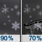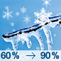 Temperature: 37°F Wind Speed: 6 to 10 mph Wind Direction: E Forecast: A slight chance of rain showers before 7am, then freezing rain likely and rain and snow showers. Cloudy, with a high near 37. Chance of precipitation is 90%. |