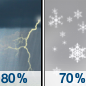 Temperature: 34°F Wind Speed: 6 mph Wind Direction: S Forecast: Snow showers likely before 1pm, then rain and snow showers likely. Mostly cloudy, with a high near 34. Chance of precipitation is 70%. |
