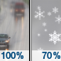 Temperature: 36°F Wind Speed: 10 to 14 mph Wind Direction: WSW Forecast: Rain likely before 5am, then rain and snow likely. Mostly cloudy, with a low around 36. Chance of precipitation is 70%. |