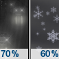 Temperature: 47°F Wind Speed: 7 to 12 mph Wind Direction: W Forecast: Rain and snow likely. Mostly cloudy, with a high near 47. Chance of precipitation is 60%. |