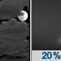 Temperature: 57°F Wind Speed: 5 mph Wind Direction: E Forecast: Patchy fog after midnight. Mostly cloudy, with a low around 57. East wind around 5 mph. Chance of precipitation is 20%. |