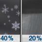 Temperature: 35°F Wind Speed: 7 to 12 mph Wind Direction: S Forecast: A chance of snow showers after 7am. Cloudy, with a high near 35. South wind 7 to 12 mph, with gusts as high as 22 mph. Chance of precipitation is 40%. |