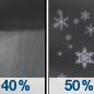Temperature: 42°F Wind Speed: 20 to 30 mph Wind Direction: W Forecast: A chance of rain and snow showers. Partly sunny, with a high near 42. Chance of precipitation is 50%. |