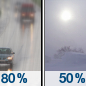 Temperature: 7°F Wind Speed: 10 to 18 mph Wind Direction: SSE Forecast: Snow likely between 11pm and 5am, then a slight chance of freezing rain. Mostly cloudy, with a low around 7. South southeast wind 10 to 18 mph, with gusts as high as 24 mph. Chance of precipitation is 60%. New snow accumulation of less than half an inch possible. |