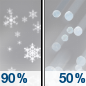 Temperature: 28°F Wind Speed: 7 mph Wind Direction: E Forecast: A chance of snow between 7am and 1pm, then snow and a slight chance of freezing rain. Cloudy, with a high near 28. Chance of precipitation is 80%. |