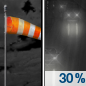 Temperature: 35°F Wind Speed: 20 to 23 mph Wind Direction: SSW Forecast: A chance of rain after 3am. Mostly cloudy. Low around 35, with temperatures rising to around 43 overnight. South southwest wind 20 to 23 mph, with gusts as high as 35 mph. Chance of precipitation is 30%. |