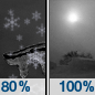 Temperature: -14°F Wind Speed: 5 to 14 mph Wind Direction: E Forecast: A slight chance of snow after midnight. Partly cloudy, with a low around -14. East wind 5 to 14 mph, with gusts as high as 23 mph. Chance of precipitation is 20%. |