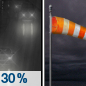 Temperature: 31°F Wind Speed: 10 to 15 mph Wind Direction: SW Forecast: A chance of rain. Cloudy, with a low around 31. Chance of precipitation is 30%. |