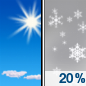 Temperature: 38°F Wind Speed: 9 to 13 mph Wind Direction: W Forecast: Snow likely before 5pm. Mostly cloudy, with a high near 38. Chance of precipitation is 70%. New snow accumulation of less than one inch possible. |